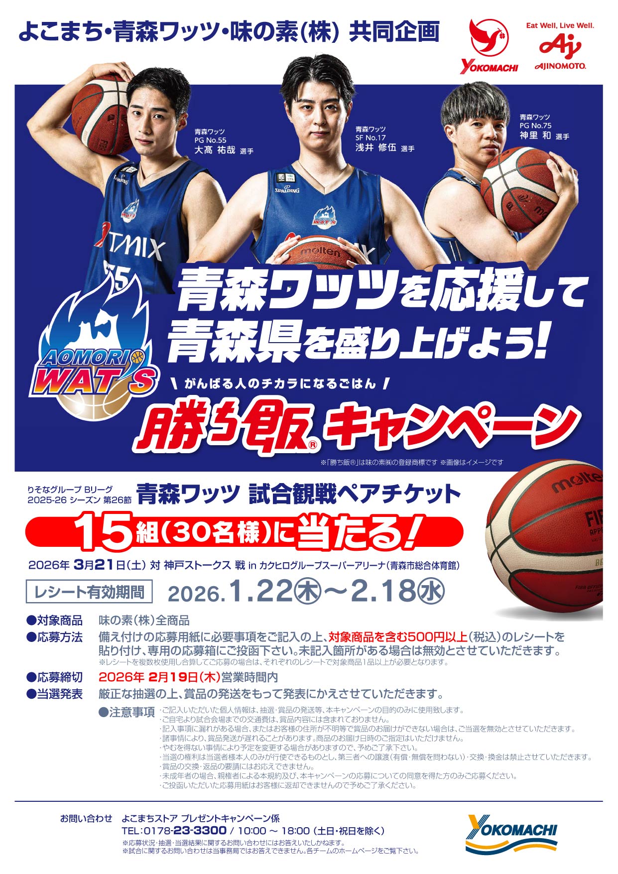 味の素(株)共同企画「青森ワッツ試合観戦ペアチケットプレゼント」キャンペーン実施中!